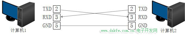 现阶段,通过电话网络进行拨号网络连接的应用已很少见,工业引用领域,更多常见的应用场景的是近距离(<15m)DTE设备与DTE设备直连,如计算机与计算机、计算机与网络设备(路由器、交换机等)管理口连接等。在应用时,则需要把收发信号进行交叉连接,如图 16所示。