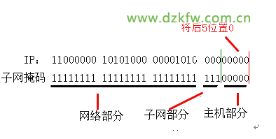 3)将该类IP地址的主机地址位数全部置1,然后从后向前的将N位全部置为 0,即为子网掩码值。