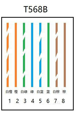 网线的线序使用T568B,依次为白橙、橙、白绿、蓝、白蓝、绿、白棕、棕