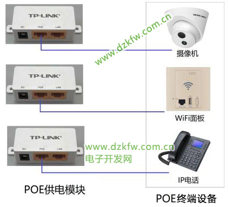 摄像机不支持POE供电,可选用POE分离模块将电源分离后接入终端设备