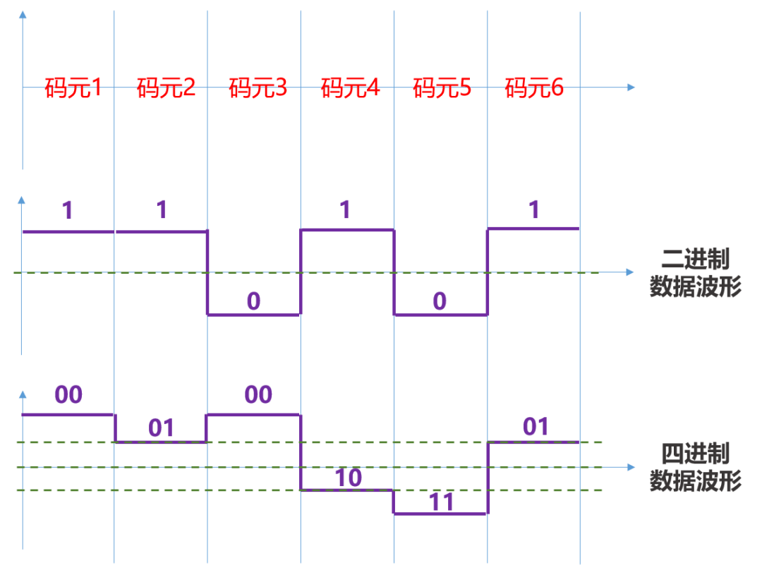 四进制,相同的波特率,比特率翻倍(信息量翻倍)