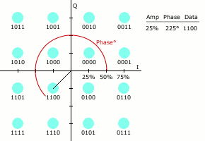 QAM的特点,是各码元之间不仅相位不同,幅度也不同。它属于相位与幅度相结合的调制方式。