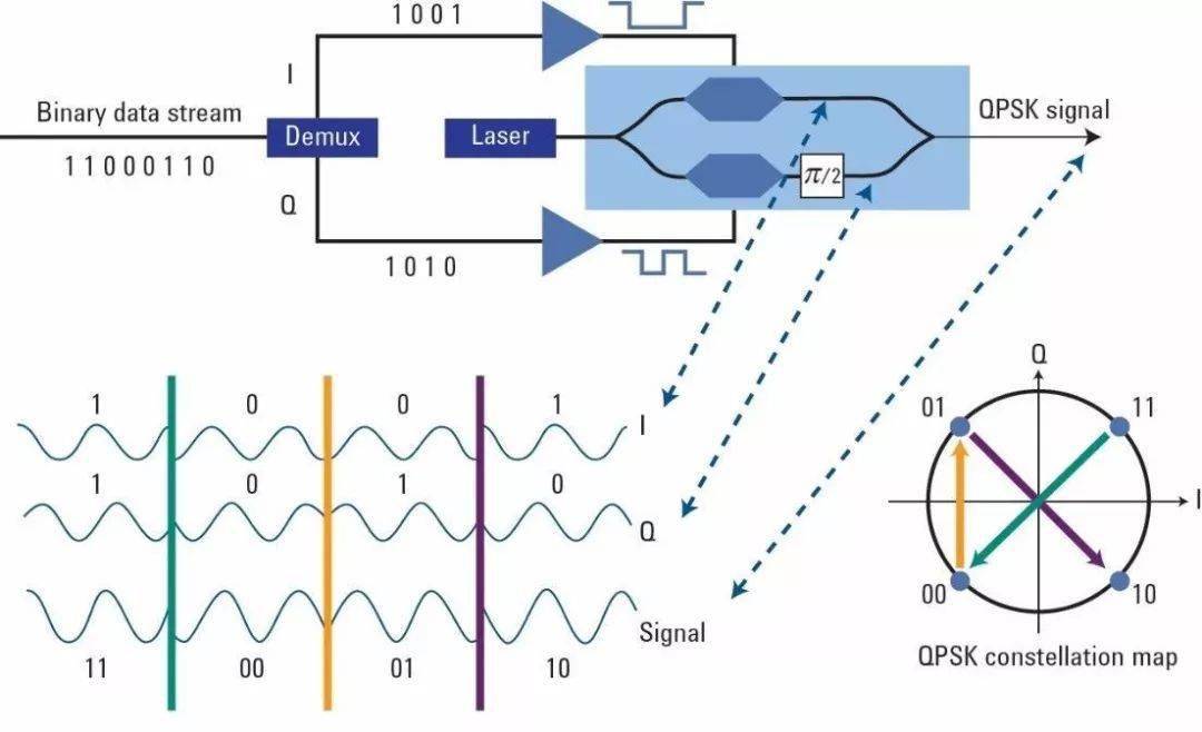 我们可以看一个通过MZ调制器捣鼓QPSK的图片: