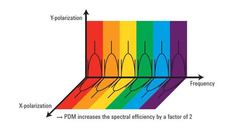 PDM偏振复用,X偏振和Y偏振,各自独立