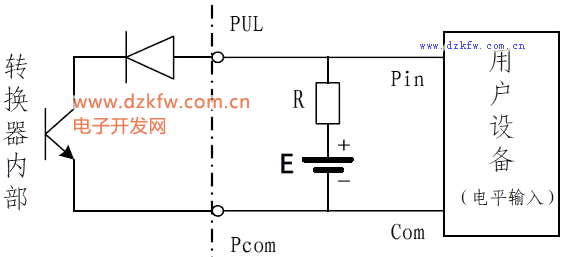 一般用户光耦需10mA左右电流,因此,E/R=10mA左右。直流电源电压E=5-24V。