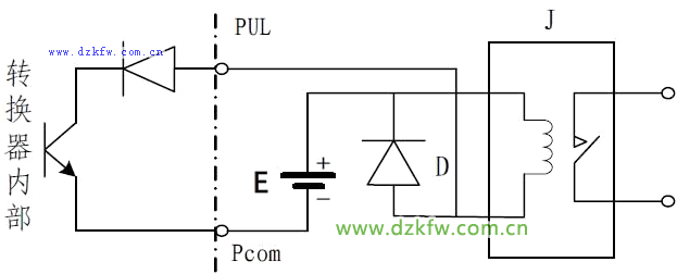 一般中间继电器需要的直流电源E电压为12V或24V。D为续流二极管,目前大多数的中间继电器内部有这个二极管。若中间继电器自身不含有这个二极管,用户应在外部接一个。