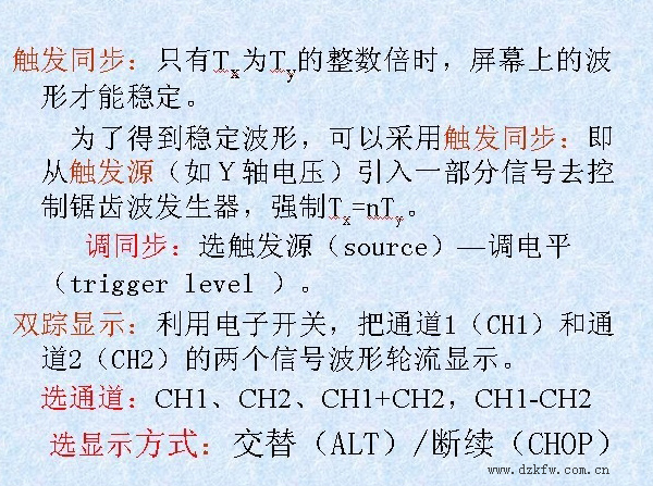 (4)CHOP:两通道断续显示,用于扫描速度较慢时双踪显示;