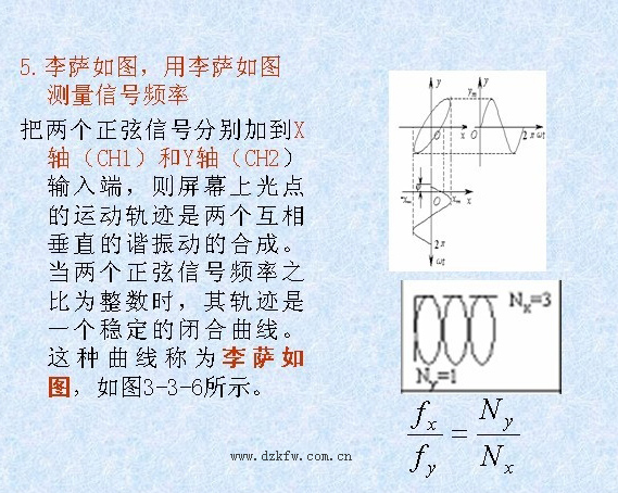 (6)读出波形每个周期在水平方向所占格数,乘以水平扫描旋钮的指示数值,得到校准信号的周期(周期的倒数为频率);