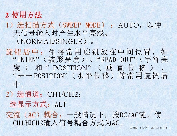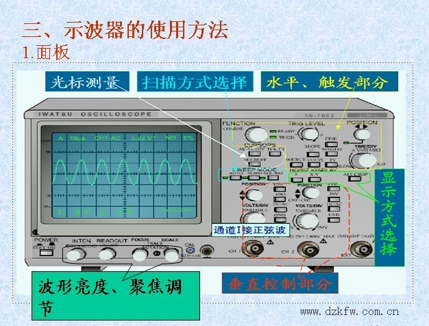 虽然示波器的牌号、型号、品种繁多,但其基本组成和功能却大同小异,本文介绍通用示波器的使用方法。 图解示波器的使用方法: