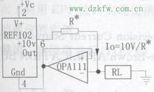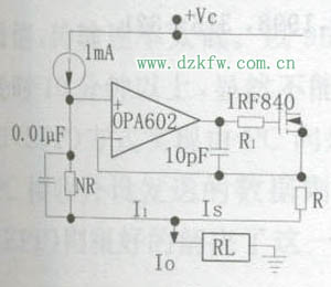 选择NR、R为高精度低温漂电阻,OPA602为精密运算放大器,则扩展后输出的电流是精密恒流源。