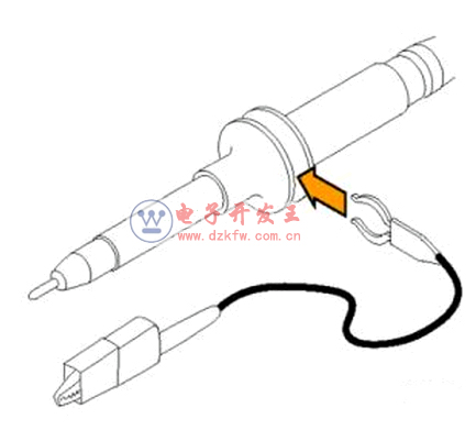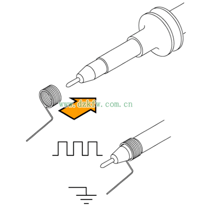 可以看出,在60MHz以上的频率,幅度已经产生了超过3dB的过冲,而到达100M左右时,过冲到最大幅度。所以如果采用地夹,测量超过60MHz的信号就会产生比较大的失真。正确的方式应该是采用接地弹簧。接地弹簧具有非常小的电感,可以大大提升探头的带宽。