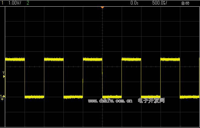 如上图,在每个通道插座上方的旋钮,就是调整该通道的幅值的,即波形垂直方向大小的调整。转动它们,就可以改变示波器屏幕上每个竖格所代表的电压值,所以可称其为“伏格”调整,如以下两幅对比图所示:左图是1V/grid,右图是500mV/grid,左图波形的幅值占了2.5个格,所以是2.5V,右图波形的幅值占了5个格,也是2.5V。推荐是将波形调整到右图这个样子,因为此时波形占了整个测量范围的较大空间,可以提高波形测量的精度,如图3所示。