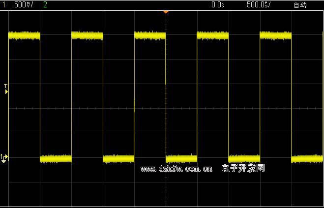 除了图3通常上方的伏格旋钮外,通常还会在面板上找到一个大小相同的旋钮(不一定像图20-6所示的位置),这个旋钮是调整周期的,即波形水平方向大小的调整。转动它,就可以改变示波器屏幕上每个横格所代表的时间值,所以可称其为“秒格”调整,如以下两幅对比图所示:左图是500us/grid,右图是200us/grid,左图一个周期占2个格,周期是1ms,即频率为1KHz,右图一个周期占5个格,也是1ms,即1KHz。这里就没有哪个更合理的问题了,具体问题具体对待,它们都是很合理的,如图4所示。