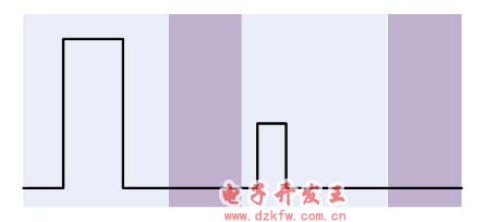 当第二个脉冲延迟到死区时,示波器同样可以在第一个上升沿稳定触发,第二个边沿没有被采集到,用户将始终观察不到这个信号。