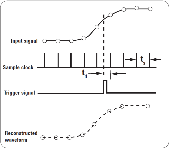 在同样的采样率下,使用随机采样方法填满一个完整的波形记录所消耗的时间比顺序采样多很多,因为这时是用统计的方法来填充所有存储器位置的。随机采样技术的优点在于可以提供预触发信息以及触发后信息。