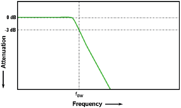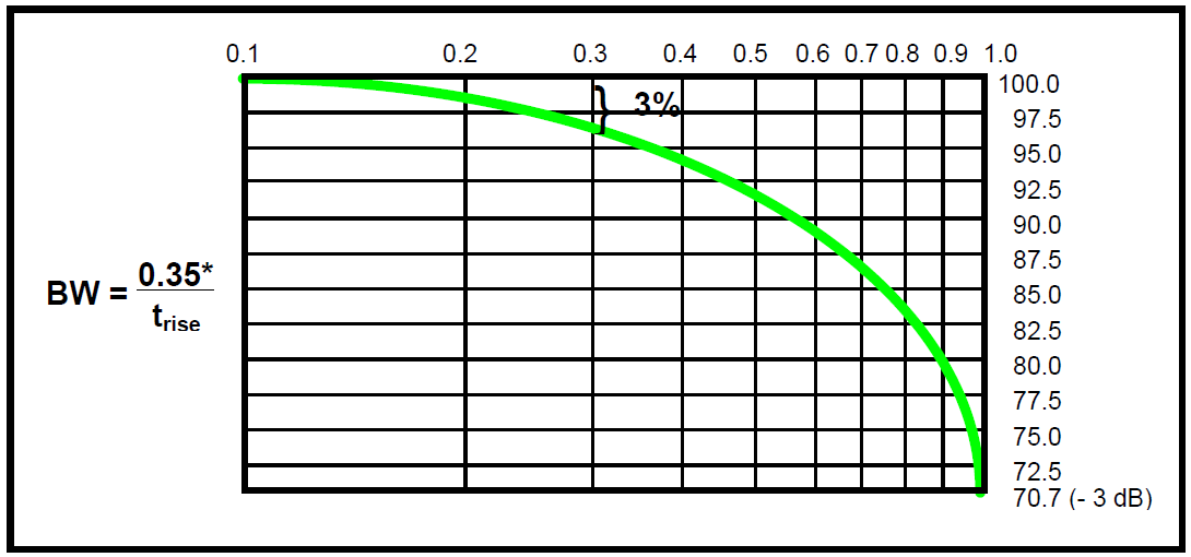 大多数带宽技术指标在 1 GHz 及以下的示波器通常会出现高斯响应,并在 -3 dB 频率的三分之一处表现出缓慢下降特征,如图2所示: