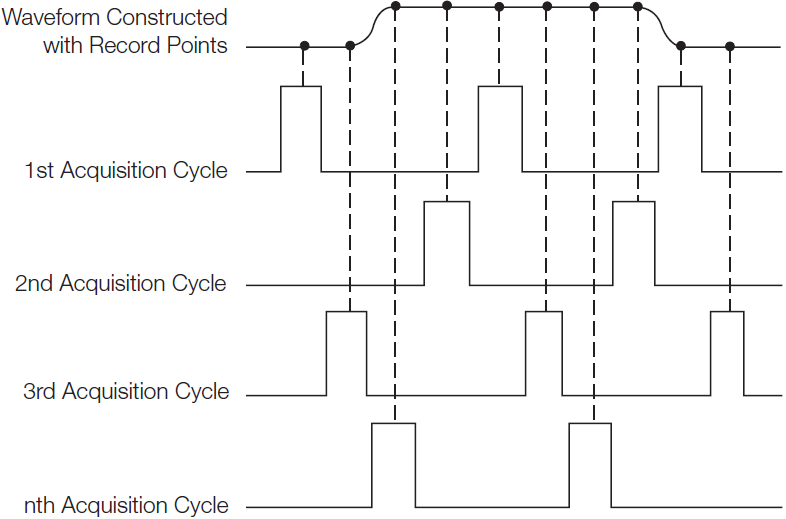 等效采样有两种方式:随机等效采样(Random equivalent-time sampling)和顺序等效采样(Sequential equivalent-time sampling)。