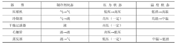 制冷剂在压缩机运转制冷时,在各器件(管路)的状态、压力、温度不同,如图6所示。压缩机停转后,制冷剂在制冷系统中压力相同,其平均压力为0.19~0.22MPa。