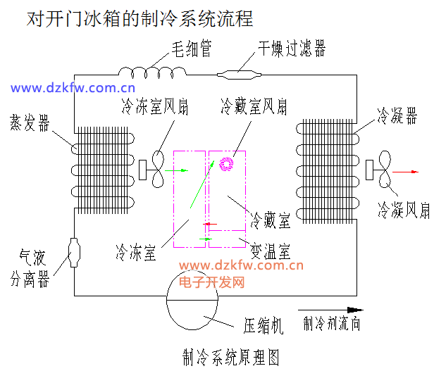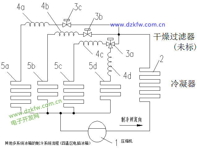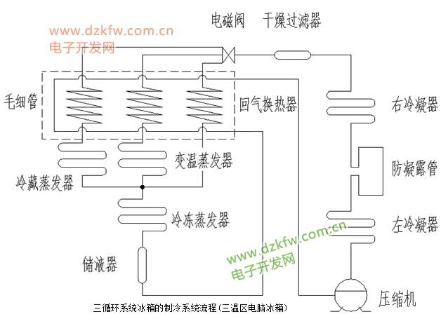 3、三循环系统冰箱的制冷系统流程(三温区电脑冰箱)