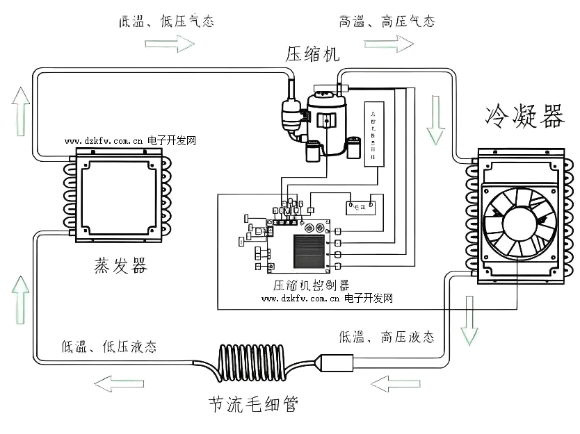 压缩机是制冷系统的“心脏”,负责将蒸发器中的低压制冷剂蒸气吸入,并压缩成高温高压的气体。这个过程中,制冷剂的温度和压力均升高,为后续的冷凝过程提供了条件。