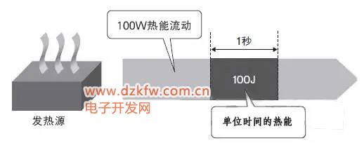 设备会持续发热。像这样,热量连续不断流动时,估计用“每秒的热能量”来表示会更容易理解。单位为“J/s”。J/s也可用“W”(瓦特)表示。 1 W=1 J/s