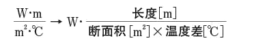 如果用一句话来表述导热率的含义,即“有一种长1m、断面积为1m2的材料,其两端的温度差为1℃时,会流动多少W”。如果将其单位“W/(m·℃)”写成