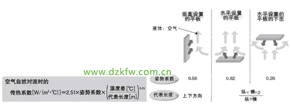 该传热系数受散热面设置状况的影响较大。根据流体的种类、流速及流动方向等,数值会发生变化。因此,计算传热系数的公式会根据不同的情况发生改变。