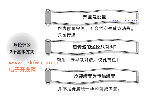 热能传递只有3种方式。分别为“传导”、“对流”及“热辐射”。请注意,传导与对流表面文字相似,但绝不相同!