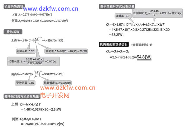 并且,暂不考虑散热片设计情况及处理器的温度。这里仅针对箱体大小、表面情况及外部温度决定的能量进出收支计算。
