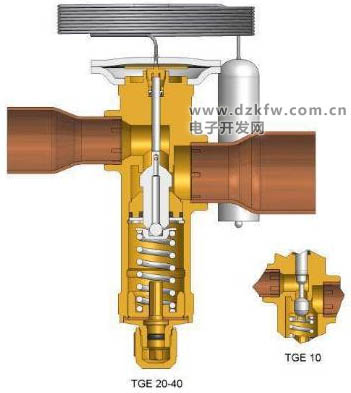 热力膨胀阀以蒸发器出口温度为控制信号,通过感温包,将此信号转换为改为感温包内蒸汽的压力,近而控制膨胀阀针的开启度,达到反馈调节的目的。热力膨胀法的不足之处: