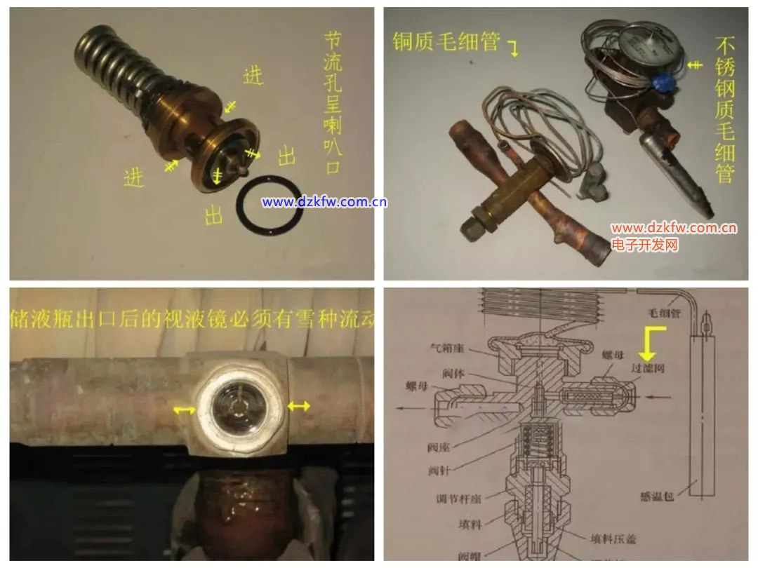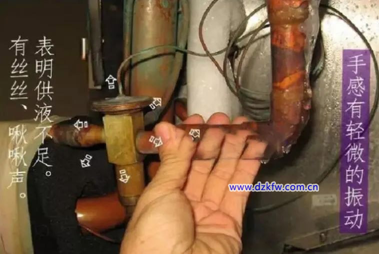 (10)正常情况下,膨胀阀工作时很幽静,如果发出比较明显的“丝丝”声,说明缺少剂。