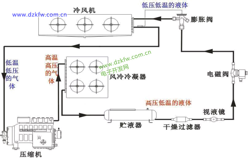 库房的热负荷:热负荷的变化是经常发生的。当热负荷增大时,其它条件不变的情况下,蒸发温度就会升高,低压压力也会升高,吸气的过热度也会加大。