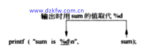 在执行printf函数时,将sum变量的值(以十进制整数表示)取代引号中的 %d 。如下图: