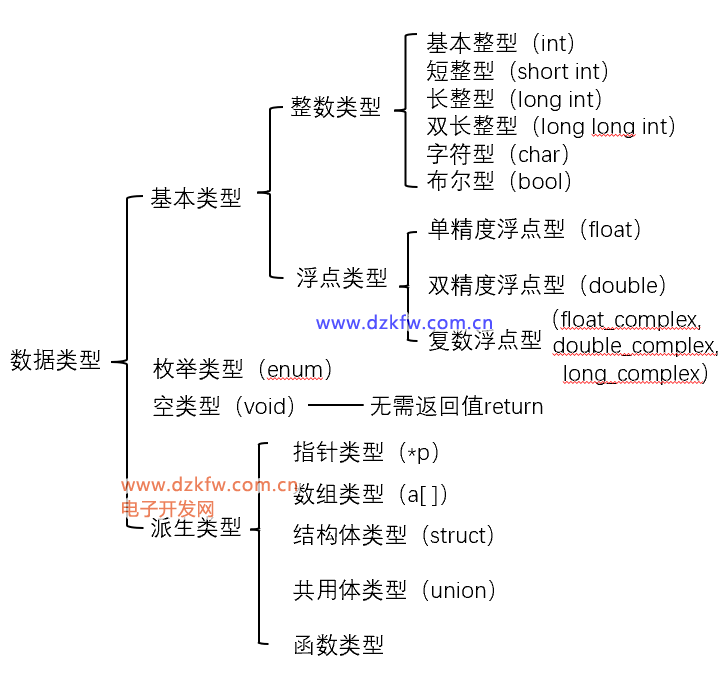 C语言中的浮点数类型有 float型(单精度浮点型)、double型(双精度浮点型)和 long double型(长双精度浮点型)。