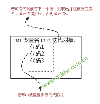 for循环称之为"取值循环",循环次数取决in后包含的值的个数
