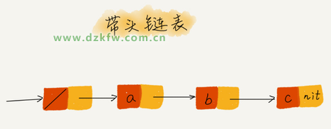 如果我们引入哨兵结点,在任何时候,不管链表是不是空,head 指针都会一直指向这个哨兵结点。我们也把这种有哨兵结点的链表叫带头链表。相反,没有哨兵结点的链表就叫作不带头链表。