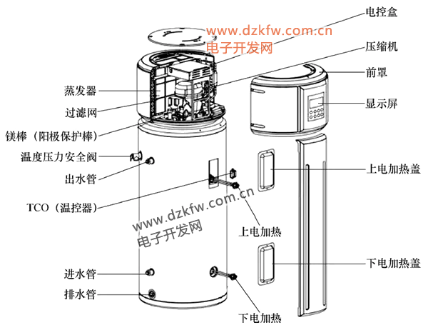 空气能热水器工作原理示意图