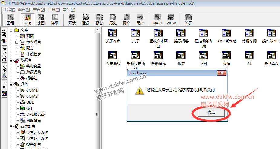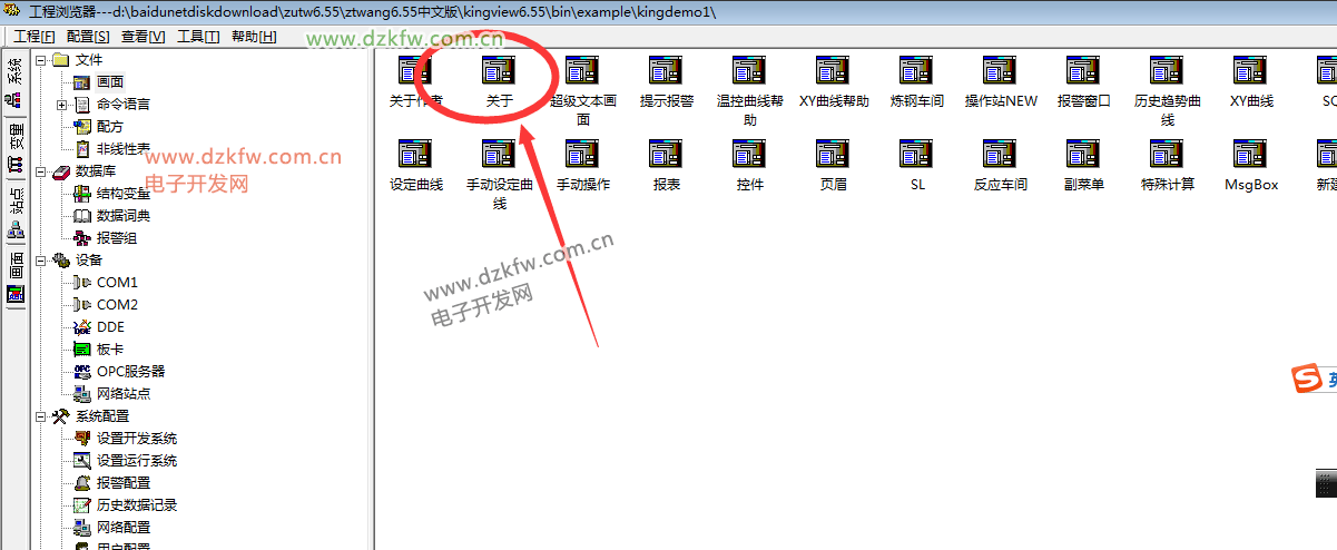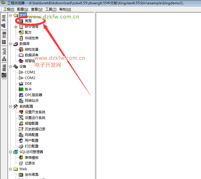 1. 打开组态王编程软件在项目树中选择【画面】点击打开