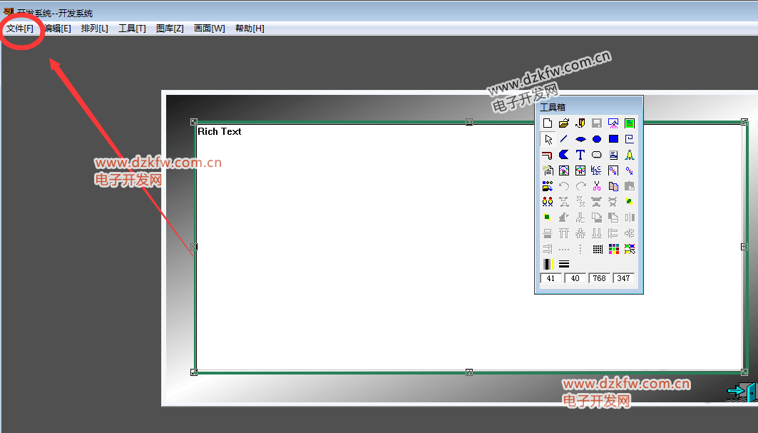 3. 进入开发系统窗口中选择【文件】点击打开。