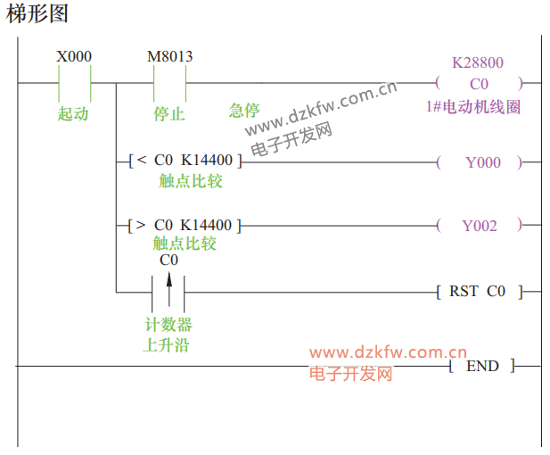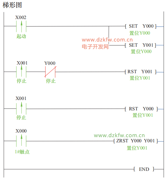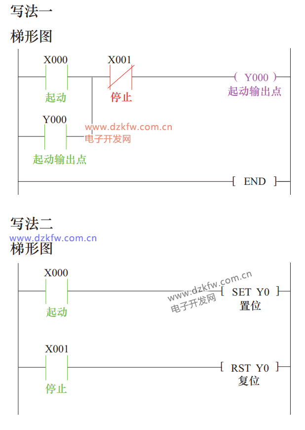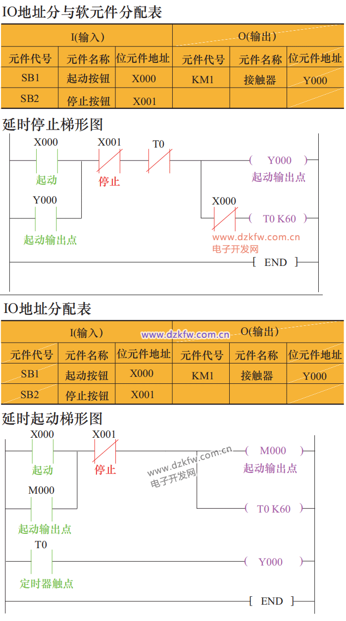 三菱FX3U PLC延时停止电路、延时起动电路梯形图