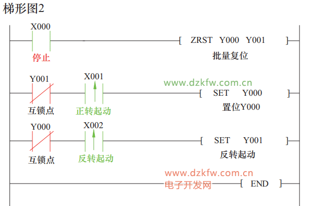 三菱FX3U PLC电动机正反转控制、复合连锁电路梯形图