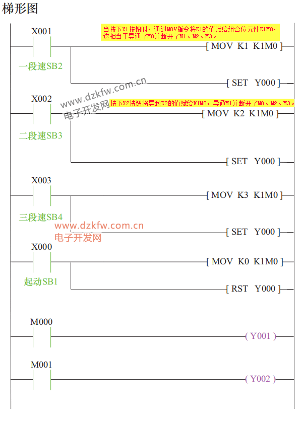 三菱FX3U PLC通过变频器控制电动机三段速运行梯形图