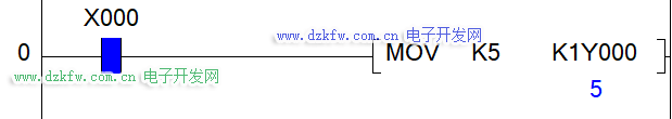 正解:当组合数与MOV使用时,这时K1Y0=[Y0.0 Y0.1 Y0.2 Y0.3],在这之前我们需要知道Y0是由8个位组成即Y0.0~Y0.7。而K5也需要转换为二进制数,5的二进制数是0101,所以[MOV K5 K1Y0]= [Y0.0 Y0.1 Y0.2 Y0.3]对应[1 0 1 0]或者[Y0.3 Y0.2 Y0.1 Y0.0]对应[0 1 0 1]