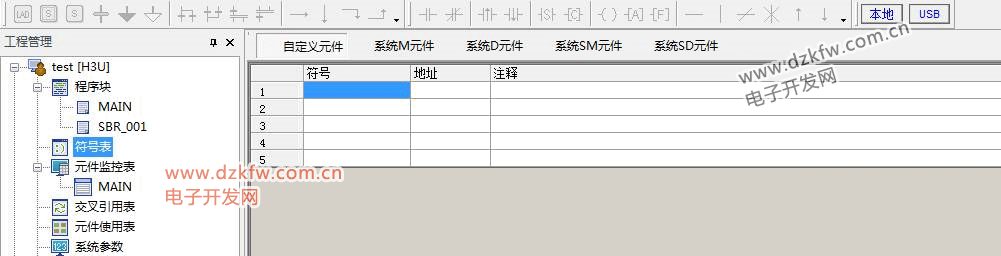 符号表头为符号名称、地址、注释三个属性,地址即相当于软元件名称。