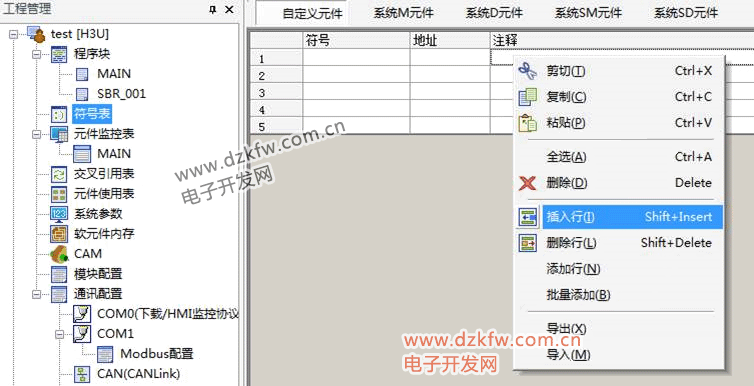 除了上述软元件内存表的特有功能外,还有复制、粘贴、剪切、删除功能,由于这些功能同符号表的功能类似, 故不再赘述,可参考符号表的编辑功能