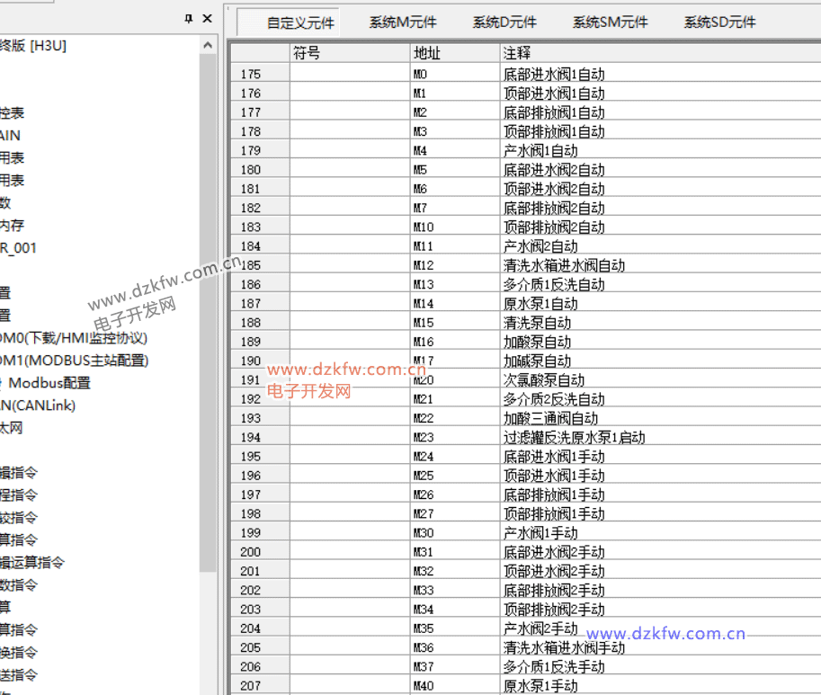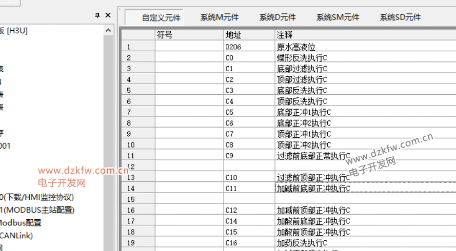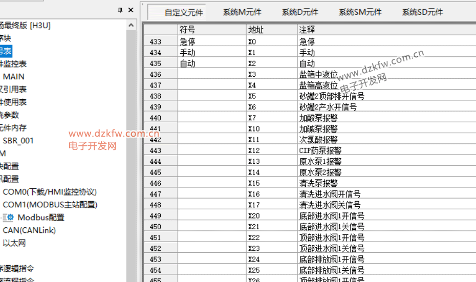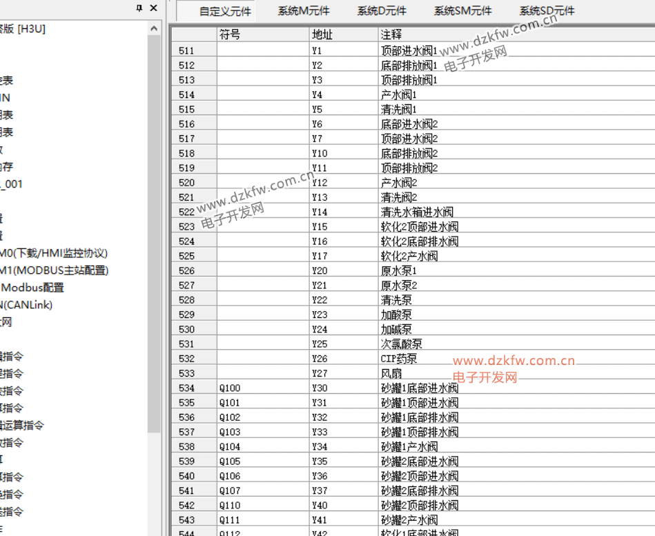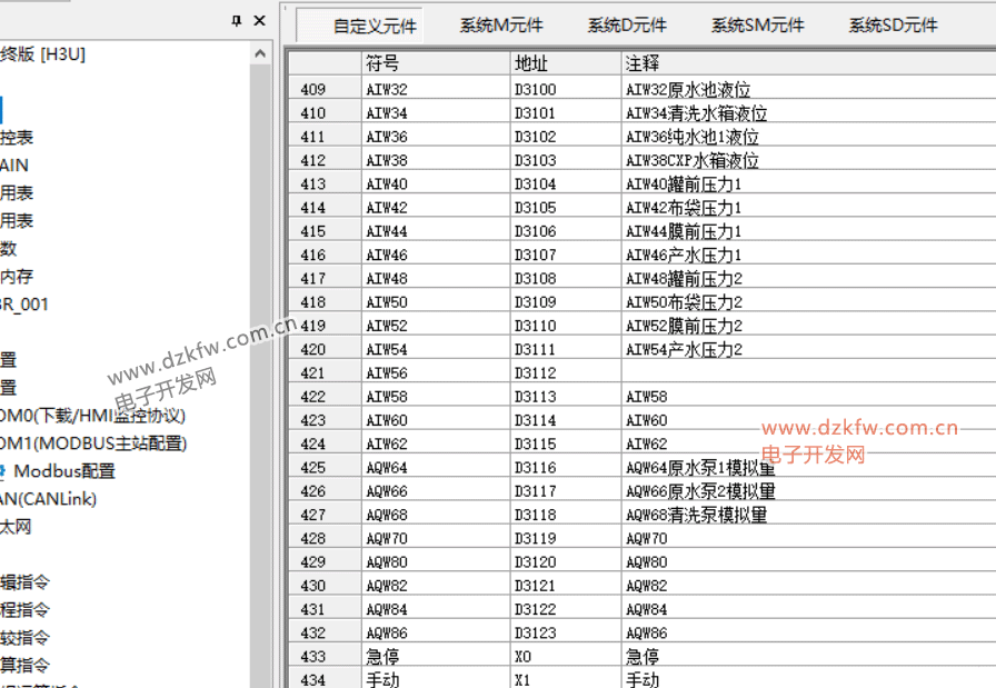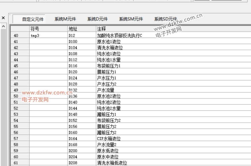 软元件内存表主要是用来保存用户设定的数据寄存器(D)元件的值,其元件范围为D0—D8255。