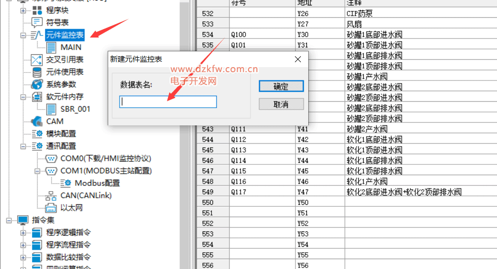 新建软元件内存表: