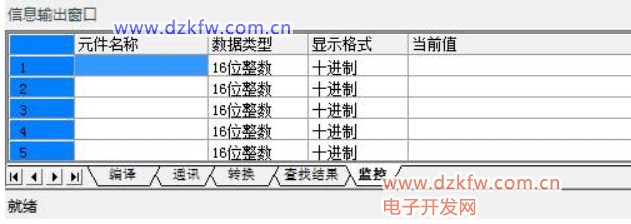 元件监控表的表头由:元件名称、数据类型、显示格式、当前值、新数值,下面分别介绍。