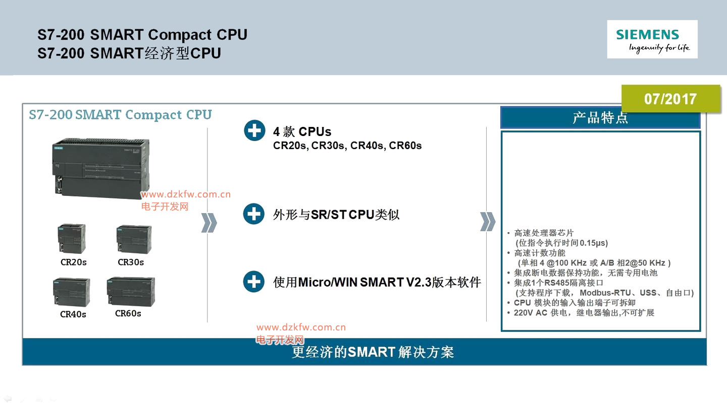 S7-200 SMART全新设计,性能卓越:为各种应用提供了经济、可靠、易用的解决方案。