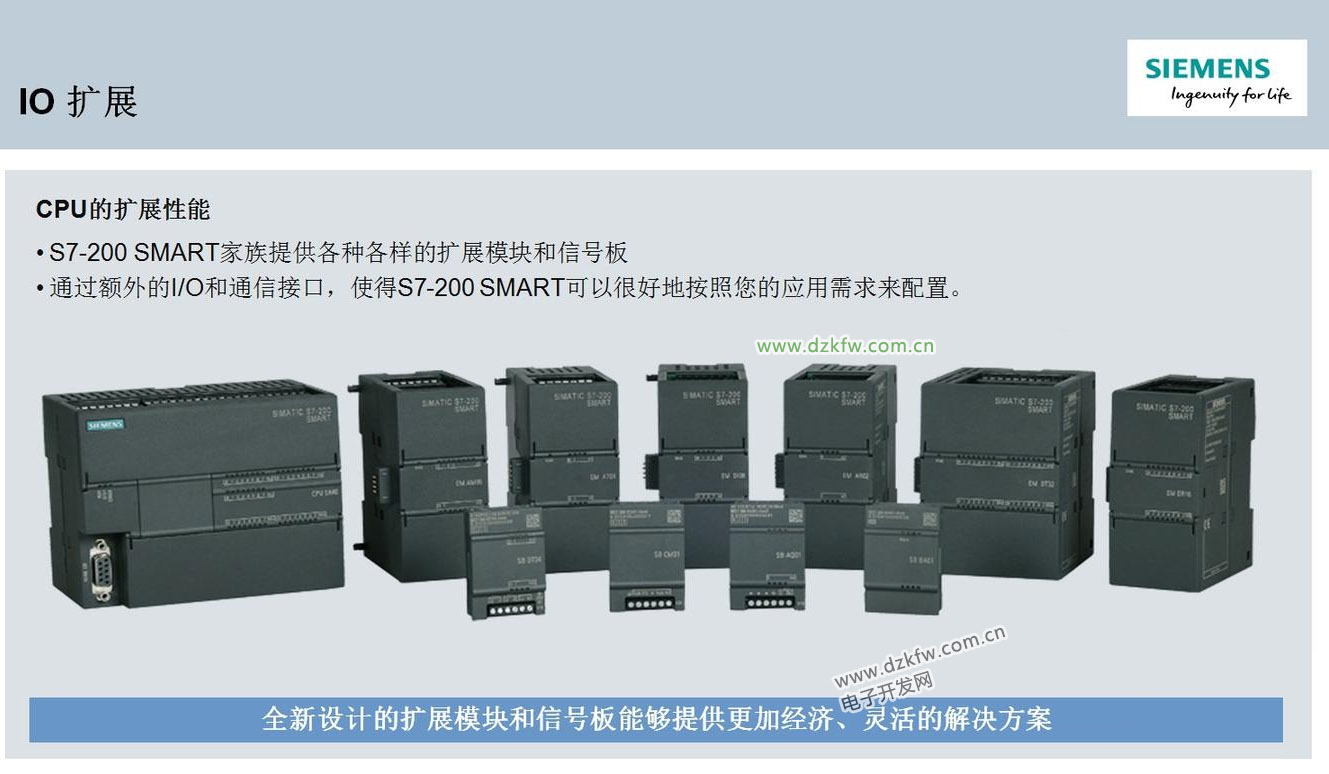 S7-200 SMART家族提供各种各样的扩展模块和信号板通过额外的I/O和通信接口,使得S7-200 SMART可以很好地按照您的应用需求来配置。